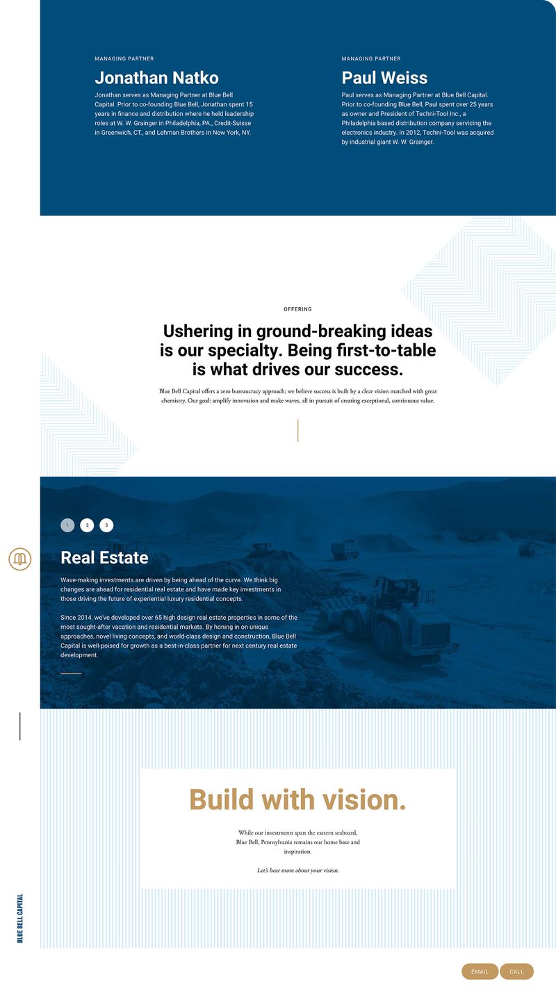 Blue Bell Capital is a boutique investment and advisory firm specializing in luxury vacation markets across real estate. This project involved developing a new website based on their existing brand guidelines and provided design mockups, with the goal of creating a refined digital presence that reflected the firm’s premium positioning. I translated the approved designs into a fully functional, responsive website, ensuring visual accuracy, performance and consistency across devices.